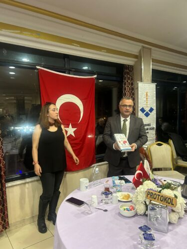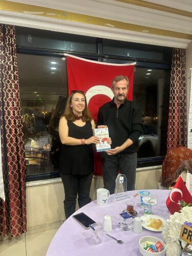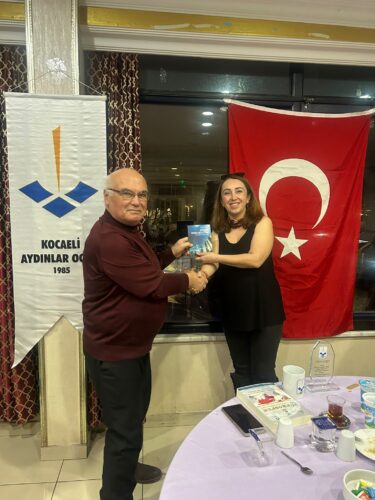 Konferans Sonunda Kocaeli Aydınlar Ocağı Başkanı Prof.Dr. Tahir Serkan Irmak, Prof.Dr. Ayşe Önsel’e eğitimci-Şair-Yazar Dr.Süleyman Pekin’in “TÜRKOSFER” isimli kitabını takdim etti.