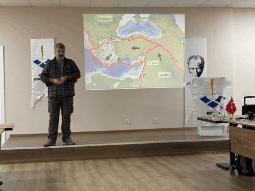 KAO Başkanı Tahir Serkan Irmak açılış konuşmasında: “Dünyaca ünlü çok önemli bir ismi ağırlıyoruz. Türkiye’de çok fazla bilinmiyor ama dünyanın yakından tanıdığı bir isim.” Diye tanıttığı Prof. Dr. Tuncay Taymaz: “Beş buçuktan küçük depremleri çok önemsemiyoruz ama 5 civarında olan depremler bile ülkemizde hasara yol açabiliyor” dedi.