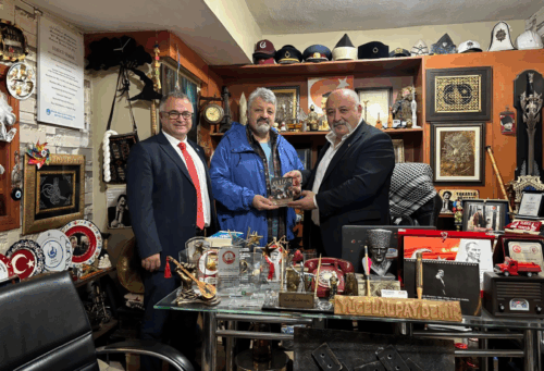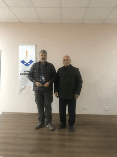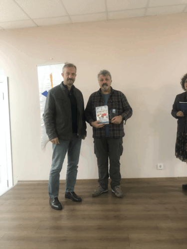 Dr. Süleyman Pekin, kendi yazdığı imzalı “Türkosfer” isimli kitabını Taymaz’a takdim ederken.
